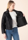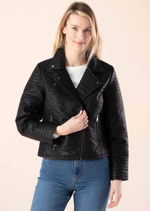 Kvaliteetne b.young tagi Basio annab enesekindla tunde. Stiilne tagi on ajatu ja hästi istuv ning pealispind on valmistatud kunstnahast. Hõlmad kinnituvad lukuga, taskud on lukuga ning alumine serv vabalt langev. Ilmekust lisavad lukud varrukaotstes. Sobita erinevate riietega ning loo värskeid stiile! Modelli pikkus on 177 cm ning kannab suurust 36.