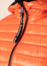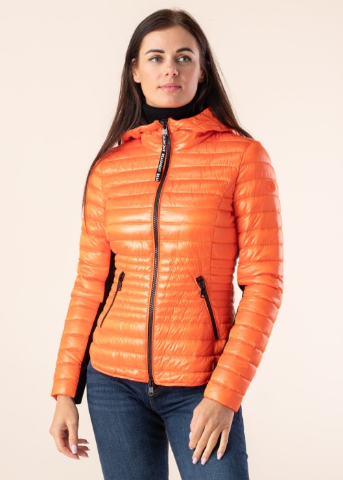 Silmapaistvalt erksavärviline Beaumont jope on täiuslik julgele naisele, kes soovib oma kevadisse või sügisesse halli argipäeva tuua kübeke värvi. Pealispinda kaunistab õrn läige, mis on äärmiselt naiselik ning pilkupüüdev. Eest suletav laiema lukuga, mille lõpus kõrge kraeosa ja hubane kapuuts kaitsevad kandjat tuule ning külma eest. Külgedel paiknevad lukkudega taskud on suurepärased välitingimustes viibides oluliste esemete muretuks hoiustamiseks. Varrukate alaosa on elastsest mustast kangast, mis sobitub kapuutsi võrkja voodriga ning teiste jopel olevate detailidega. Vasakpoolsel varrukal paikneb kummine brändi logo. Pihaosast on jope kehasse hoidva tegumoega, rõhutades kandja taljet. Samal ajal kui sisemus on nahal mõnusalt pehme ning mugav. Modelli pikkus on 176 cm ning kannab suurust 36. Jope pikkus turjast alaservani on 61 cm. Materjal: polüester 60%, nailon/polüamiid 40%. Värv: oranž.