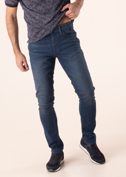 Blend teksapüksid Twister on Regular vöökõrgusega, Slim/regular istuvuse ja kitsa säärega. 5 taskuga mudel on klassikalise värvliga, mis sulgub eest nööbi ja lukuga. Materjali mõõdukas elastsus lisab mugavad igapäevaseks kandmiseks. Modelli pikkus on 195 cm ja kannab suurust 32/34
