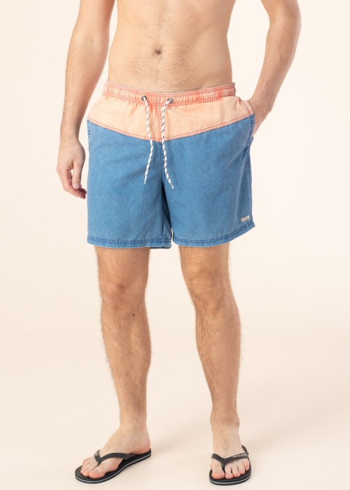 Kahetoonilised ujumisshortsid on retrohõngulised ja elastse kummivärvliga ning lisaväärtusena on toode õhuke ja kiiresti kuivav. Külgedel on avatud taskud , taga krõpsuga tasku ning värvlil tunnelpael. Sisemuses on õhukesest võrkkangast püksid. Modelli pikkus on 188 cm ning kannab suurust L.