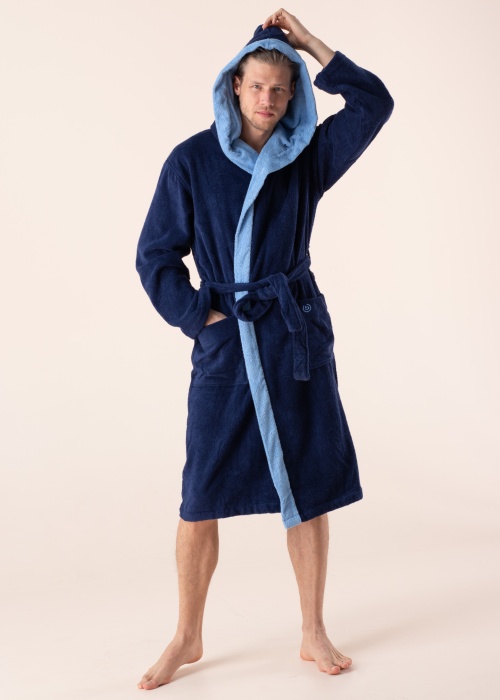 Bugatti hommikumantel Stefano on pehmest puuvillast, mugav ja praktiline. Esiküljel on kaks mahukat avatud taskut ja keskkohast kinnitatav klassikalise vööga. Tagasihoidlikku aktsenti lisavad heledama viimistlusega hõlma ja kapuutsi servad. Modelli pikkus on 193 cm ja kannab suurust L. Üldpikkus antud suurusel on 122 cm. Materjal: puuvill 100%.