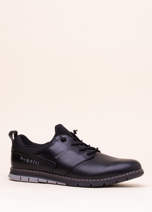 Stiilsed Bugatti vabaajajalatsid Sandman sobivad erineva iseloomuga päevadesse. Pealispind on valmistatud kunstnahast ja aktsenti lisab brändi kirje ning praktilisust lisab perforeering. Sisemust vooderdab tekstiil ja sisetald on pehmendusega ning vastupidavast kummisest materjalist välistald pakub stabiilse ja kindla sammu. Läbiõmbluse soovitame enne kasutamist katta mesilasvahaga, et sulgeda avad ning takistada seeläbi niiskuse sattumist jalatsi sisemusse. Sobita erinevate riietega ning loo värskeid stiile!