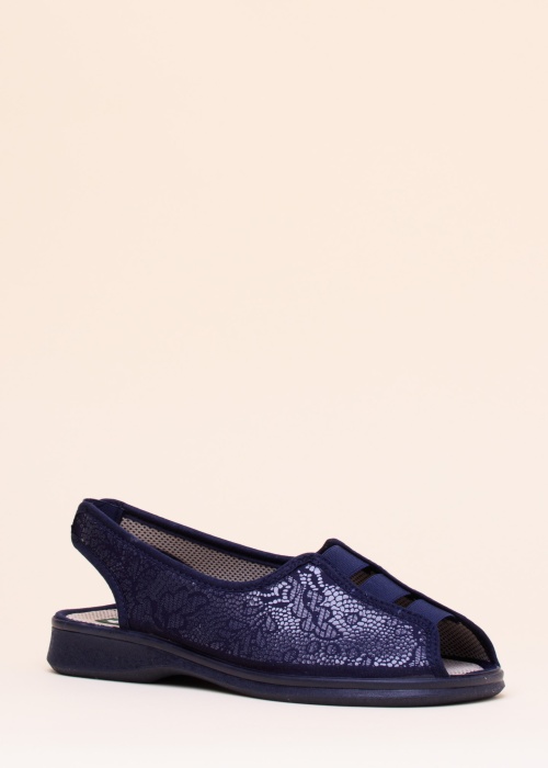 Väga mugavad kingad Campello loomingust, mille pealispind kui ka sisu valmistatud tekstiilist. Pealispinnal kaunistuseks lillemotiivid. Kanna ja esiosas kummiliistud, mis muudavad jalgapaneku mugavamaks. Välistald sünteetikast. Kaal suurusel 40 on 262 g. Värv: sinine