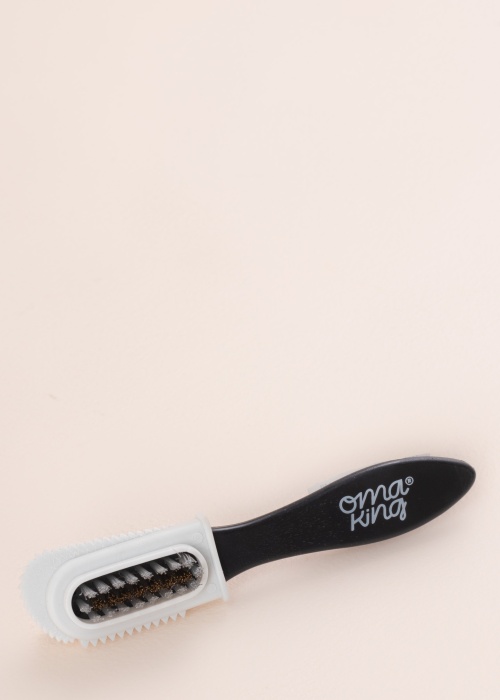 Igati praktiline OmaKing veluurhari on suurepärane abiline nubuki ja veluuri kuivpuhastamiseks ja harjamiseks. Harja väiksem tegumood muudab selle kaasaskandmise meeldivalt mugavaks. Toode omab kahte puhastusharjast, millest üks on kummisest materjalist ning teine klassikaline, tugevam harjas. Karja pikkus on 15 cm.