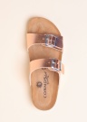 Tõeliselt mugavad Cosmos rihmikud, millele antud naiselikkust roosalt särava pealispinnaga. Rihmikuid võimalik reguleerida reguleerimispannaldega. Sünteetilisest materjalist rihmikute siseküljel viltjas ja jala vastas mõnus tekstiilist vooderdus. Sisetald anatoomiline, jalga toetav, pehmendusega kausjas sisetald, millel seemisnahast pealispind tagamaks hubasust sandaali kandmisel. Korkmaterjalist vahetald pakub looduslikku pehmust, välistallal kasutatud sünteetilist hästi painduvat materjali. Talla paksus on 2 cm. Sandaali kaal suurusel 39 on 200g. Värv: Roosa