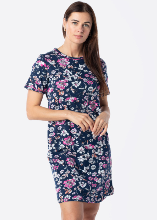 Damella naiste öösärk on kaunistatud lillelise mustriga, mis lisab sellele naiselikku võlu. Sellel on ümar kaelus ja lühikesed varrukad, pakkudes mugavust ja stiili igal ööl. See öösärk kallistab sind oma hubasusega, luues ideaalse uneelamuse. Modelli pikkus on 176 cm ja kannab suurust S.
