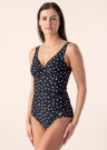 Damella trikoo Fiona sobib nii trenni kui ka mõnusaks lõõgastumiseks. See kaunis trikoo on naiselik ning täpilise mustriga. Praktilisust lisavad polsterdatud rinnakorvid ning kandmismugavust pakub materjali elastsus. Naudi kaaslaste tunnustavaid pilke. Modelli pikkus on 176 cm ning kannab suurust 38.