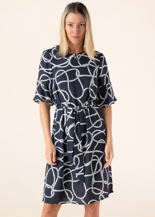 Kena Denim Dream kleit Anni esindab klassikat. Viisakas sirge tegumoega kleit on kolmveerand varrukatega, õhuke ja hästi langev. Pilku püüavad veetlevad satsid varrukaotstes , kaelusel on nööpkinnitus keskkohas on seotav vöö. Silmailu lisab mänglev muster. Modelli pikkus on 177 cm ning kannab suurust S.