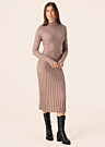 Diverse naiste kootud kleit beezis toonis on elegantne ja ajatu valik igaks hooajaks. Kleit on disainitud kõrge kaelusega, mis lisab kandjale soojust ja stiili. Pikad varrukad teevad sellest ideaalse rõivaeseme jahedamateks päevadeks. Ühevärviline disain võimaldab kleiti lihtsalt kombineerida erinevate aksessuaaride ja jalanõudega. Modelli pikkus on 178 cm ja kannab suurust S.