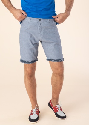 Diverse meeste lühikesed püksid azure243 on stiilipuhtad ja mugavad suviseks garderoobiks. Pükstel on õhem tegumood ja laiad sääred, mis tagavad maksimaalse mugavuse ja liikumisvabaduse. Värvlil on nööp, mis lisab praktilisust ja kindlustunnet. Esiküljel on avatud tasku, kuhu saab mugavalt paigutada väiksemaid esemeid, ning taga on nööbiga tasku, mis lisab pükstele stiilse detaili. Modelli pikkus on 188 cm ja ta kannab suurust 32.