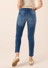 Mugavast stretch materjalist Dranella teksapüksid Pam on Tight Fit liibuva lõike, kitsa Narrow säärte, Puch-Up tagumiku ja kõhtu vormiva tegumoega. 7/8 pikkusega säärte otste välisküljel on disainnööpidega moodustatavad lõhikud. 5 taskuga mudeli värvel on eest nööbi ja lukuga kinnitatav ning tagaküljel paikneb nahksel taustal metalne brändi logo. Modelli pikkus on 178 cm ja kannab suurust 36.