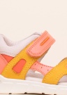 Rõõmsavärvilised ja armsad Ecco sandaalid Mini Stride muudavad õues olemise nauditavaks. Pealispind on valmistatud nahast ja meeleolu loob šeff pinnadekoor. Sisemust vooderdab nahk ja sisetald on pehmendusega ning kumjast sünteetilisest materjalist välistald on päkaosas hea painduvusega. Naudi tuju tõstvat värvide energiat!