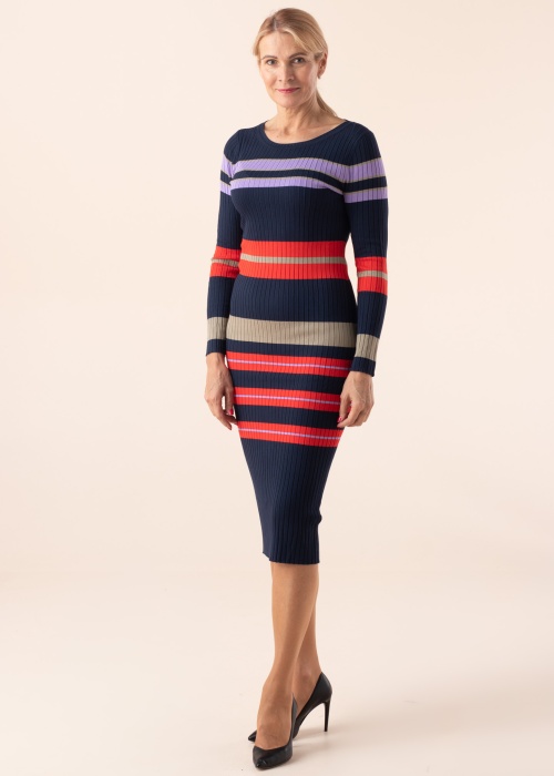 Argine ja soonikkoes Esprit kootud kleit sobib argiseks kandmiseks. Esikülge ilmestab põnev muster. Lihtne disain kõnetab oma nauditava väljapeetusega. Pehme ja nahasõbralik kootud kleit on soonikkoes ning liibuva tegumoega. Modelli pikkus on 178 cm ning kannab suurust S.