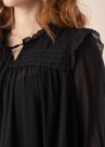 Maitsekas Esprit kleit sobib õhtusteks kohtumisteks. Pidulik pikkade varrukatega kleit on avara istuvusega ja lendlev. Kaelusel paikneb seotav pael , ilmekust lisavad veetlevad satsid õla kohal ning varrukaotstes on kummid. Sisemuses on aluskleit. Modelli pikkus on 174 cm ning kannab suurust 36.