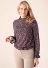 Isikupärane Esprit pluus sobib argiseks kandmiseks. Valmistatud LENZING ™ ECOVERO ™ kiust, mis on saadud sertifitseeritud taastuvatest puiduallikatest, kasutades keskkonnasõbralikku tootmisprotsessi ja järgides kõrgeid keskkonnastandardeid. Retrohõnguline lillelise mustriga pluus on elastne ning pikkade varrukatega. Servades on veetlevad satsid ja turjal on nööpkinnitus. Meeldiva puudutusega kangas võimaldab kandmist nautida. Modelli pikkus on 178 cm ning kannab suurust S.