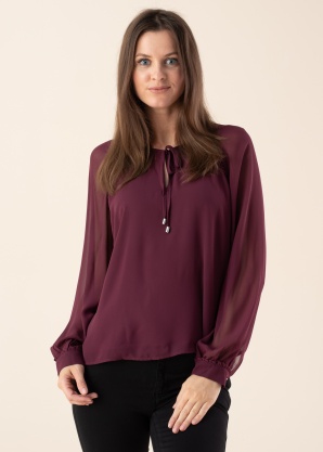Viisakas Esprit pluus sobib erineva iseloomuga päevadesse. Naiselik ümara kaelusega pluus on õhuke ning läbikumav. Kaelusel on seotavad paelad ja varrukaotstes on nööpkinnitus. Sobita erinevate riietega ning loo värskeid stiile! Modelli pikkus on 177 cm ning kannab suurust S.