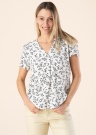 Õhuline, lillelise mustriga Esprit pluus sobib suviseks kandmiseks. Õhuke ja kerge pluus on v-kaelusega ning tagant pikema tegumoega. Aktsenti lisab disainõmblus kaelusel. Modelli pikkus on 177 cm ning kannab suurust S.