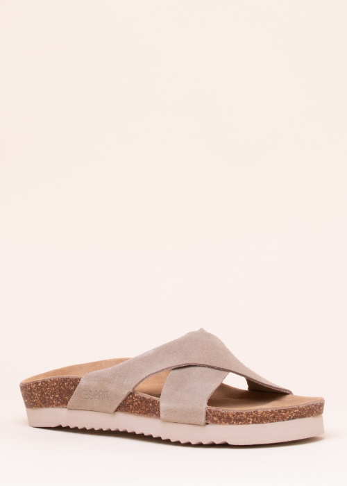 Lihtsamoelised ja mugavad Esprit seemisnahast sandaalid paistavad silma oma stiilipuhtusega. Pealispinnal lookleb kaks ristuvat paani, mida ilmestab väliskülje alaosas olev brändi kirje. Sisepinda katab samuti nahk ning õrna pehmendusega sisetald on kandja jala kuju järgiv. Vahetald on valmistatud korkjast materjalist ning vahtkummist vahetald annab kerguse ning kummine põhi soodustab haarduvust. Suurus 39 jalatsi kaal on 201 g.