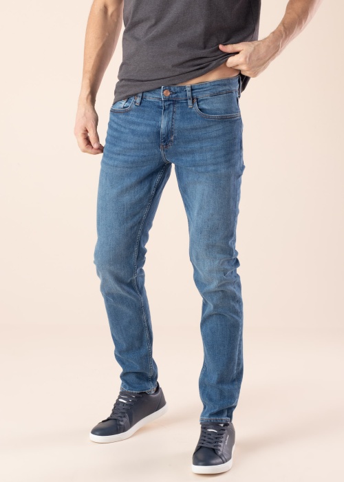 Ajatud Esprit teksapüksid sobivad argiseks kandmiseks. Slim Fit lõikega teksapüksid on keskmise kõrgusega värvliga ja sirgete säärtega. Värvel kinnitub nööbi ja lukuga ning esi- ja tagaküljel on avatud taskud. Kandmismugavust pakub materjali elastsus. Modelli pikkus on 195 cm ning kannab suurust 32-34.