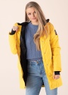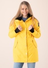 See, imekena, naiseliku lõikega, kehasse hoidev Five Seasons parka Gisella on ideaalne ettearvamatute kevad – ja sügisilmadega kandmiseks, pakkudes kaitset ootamatute sademete ja jahedate tuuleiilide eest. BIONIC-FINISH ECO tehnoloogia annab vee- ja mustusehülgavuse, hoiab värvid kauem värsketena, võimaldab kangal kiiresti kuivada, kannatab hästi ka aktiivset tegutsemist, on hingav, lisaks ilmastiku- kui ka pesemiskindel. Toote õmblused on teibitud, piiramaks niiskuse tungimist sisemusse ning tagades tuultpidavuse. Vetthülgavus on 5000 mm ning hingavus 3000 g/m2/24h. Eest kinnitub see kõrge, püstise kaelusega parka tõmblukuga, mida kaitseb trukkidega suletav katteliist. Kapuuts omab sisemuses hubast, fliisja puudutusega voodrit ning on reguleeritav pingutuskummi ja stopperitega. Külgedel asetsevad magneetilist kinnist omava klapiga ning tõmblukuga kindlustatud taskud, kus on mugav hoida olulisi esemeid välitingimustes viibides. Käiste otste randme ligi hoidvust on võimalik mugavalt kohendada krõpskinniste abil. Rinnal ning ülaseljal paikneb minimalistlik tikitud logo, tagakülje alaosa ilmestab tagasihoidlik väljalõige. Jope sisemust vooderdab libedam polüestervooder ning pihaosa on võimalik reguleerida pingutuskummiga. Õrn soojustus hoiab kandja soojas ka jahedama ilma korral. Modelli pikkus on 169 cm ning kannab suurust 36. Parka pikkus on turjast alaservani 87 cm. Materjal: pealispind, vooder, täidis polüester 100%. Värv: kollane.