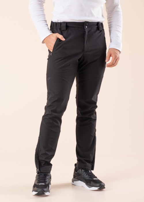 Meeste Five Seasons püksid Shelby on valmistatud õhemast softshell materjalist, mis tagab veehülgavuse 8000MM, hingavuse 5000 g/m2/24H ning on ka tuulekindel. Värvel on eest haagi, truki ja lukuga kinnitatav ning paremat kohandumist kehale võimaldavad külgedel paiknevad kummipaneelid. Kaks küljetaskut on käepäraste lukkudega, põlved on mugava eeltöötlusega ja säärte otstele on võimalik täiendavat lisalaiust anda lukkude avamisega väliskülgedel. Modelli pikkus on 183 cm ja kannab suurust L. Materjal: polüester 92%, elastaan 8%. Värv: must