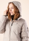 Kena Five Seasons sulemantel Iris annab tunde, et oled hoitud ja pakub kaitsvat soojust. See kerge naiselik sulemantel on taljesse hoidev ja tepitud tegumoega. Hõlmad kinnituvad lukuga, praktilised taskud paiknevad külgedel ja varrukaotstes on kummid. Kapuuts on fikseeritud ja sisemuses on lukuga põuetasku. Külma hoiab eemal kohev soojustus. Modelli pikkus on 174 cm ning kannab suurust 36.
