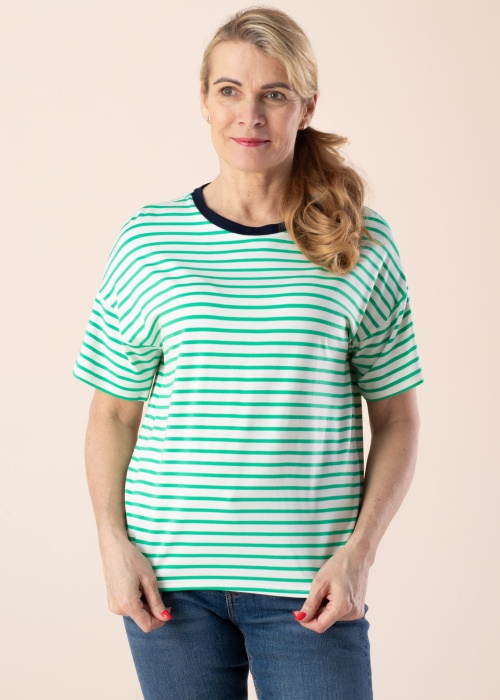 Fransa t-särk Feporsi lubab end hästi tunda igal pool! Triibulise mustriga mõnusalt pehme t-särk on ümara kaelusega ja avara istuvusega ning kandmismugavust pakub materjali elastsus. Kogu päeva kestev liikumismugavus on garanteeritud! Modelli pikkus on 178 cm ning kannab suurust S.