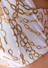 Kena, silmapaistev Guess bikiinirinnahoidja on ideaalne suvehooajaks, olles igati silmapaistev. Pealispinda ilmestab efektne ketti kujutav muster. Rinnaosa omab õrna polsterdust ning on seeläbi igati mugav. Ümber kandja kaela on see mugavalt seotav paelaga. Tagaküljel asetseb klassikaline, metalne kinnis. Kangas on nahal meeldivalt pehme ja mugav. Modelli pikkus on 176 cm ning kannab suurust S.