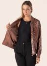 Guess naiste jakk Antonia on silmapaistev ja nooruslik rõivaese, mis tõmbab tähelepanu oma sädelevate litritega pealispinnal. Ees on mugav lukk, mis teeb jakist hõlpsasti kantava ja praktilise rõiva. Soonik nii varrukaotstes kui ka all servas tagab mugava ja hästiistuva lõike. Külgedel asuvad avatud taskud lisavad jakile funktsionaalsust ja stiili. Modelli pikkus on 177 cm ja kannab suurust S.