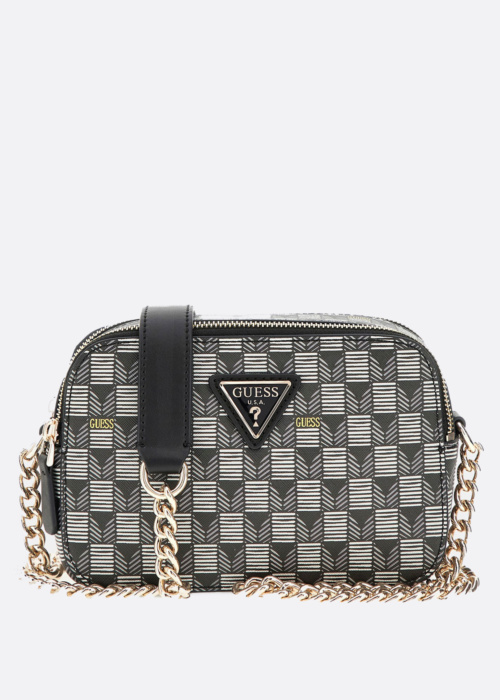 Guess naiste õlakott on silmapaistev ja stiilne aksessuaar, mis sobib ideaalselt argiseks kandmiseks. Sellel on tugev vorm ja väike suurus, mis muudab selle praktiliseks igapäevaseks kasutamiseks. Õlakotil on peal lukud, sisemuses kaardipesad ja lukuga tasku, ning põnev muster pealispinnal koos logoga ees.