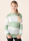 Triibulise mustriga Guess kampsun sobib argiseks kandmiseks. Kampsun on sädelev ja ümara kaelusega. Nii varrukaotstes kui ka all servas on soonikud ning pealispinnal läikivad litrid. Ole valmis igaks vahvaks päevaks! Modelli pikkus on 153 cm ning kannab suurust 147.