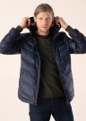 Trendikas ning pilkupüüdvalt mehelik kevad-sügis jope pärineb maailmakuulsa brändi Guess loomingust. Jope on vetthülgava ning tuultpidava viimistlusega. Pealispinnale annavad ilmekust pealiskanga tagasihoidliku läikega kuma ning õrna kaldega õmblused, mis väljendavad tepitud stiili. Eest on jope suletav tõmblukuga, moodustades meeldivalt kõrgema kraeosa, mis aitab koostöös hubase kapuutsiga kandjat soojas hoida ka jahedatel ning tuulistel päevadel. Soovi korral on võimalik kapuuts imelihtsasti lukuga eemaldada. Külgedel asetsevad katteliistu ja tõmblukuga kaitstud taskud, kus on mugav ning muretu olulisi esemeid hoiustada. Vasaku varruka õlaosas asetseb brändi logo. Sisemust katab efektne, militaarmustrit kandev polüesterkangast vooderdus. Valmistamisel on kasutatud Thermore Ecodown Fibers tehnoloogiat, mille tulemusena on toode õhuline, soe, kergesti hooldatav, mitmekujulise struktuuriga ja säilitab oma kuju kandmisel. Soojustuses on kasutatud 100% taaskasutatud kiudusid. Modelli pikkus on 193 cm ning kannab suurust L. Pikkus turjast alaservani on antud suurusel 72 cm.
