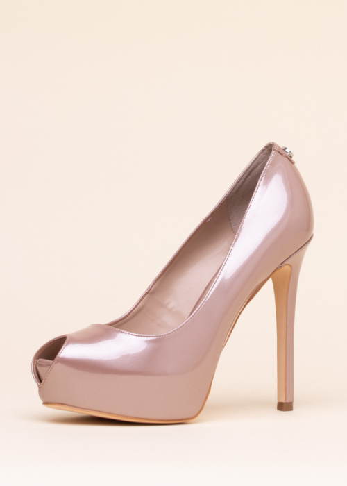 Elegantsed Guess kingad, milles tunned, et võid maailma vallutada. Lakknahast pealispinna ninal on ovaalne avaus ja tagakannal kuldne brändi initsiaal. Sisemust katab nahk ja pehmendusega sisetald on kunstnahast viimistlusega. Sünteetilisest materjalist välistald on päkaosast uhkel platvormil ja peene kõrge kontsa kõrgus on 13 cm.