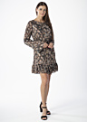 Guess naiste kleit Ilenia on pidulik ja hästi istuv rõivas, mis toob esile noorusliku stiili. Kleit on plisseeritud ja läbikumav, lisades romantilist volangi all servas ning nööpkinnituse seljal. Modelli pikkus on 176 cm ja kannab suurust S.