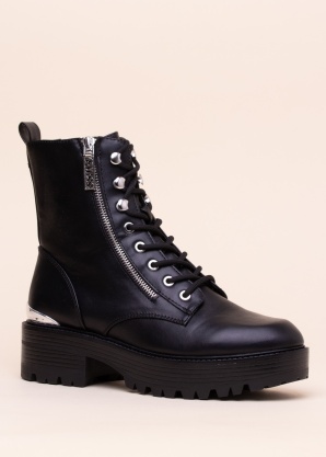 Kihvtid, paksema tallaga kunstnahast Guess poolsaapad Fearne kannavad nöörsaabastele omast stiili, olles pealispinnalt mugavalt paeltega reguleeritavad. Paelkinnis lookleb läbi säravhõbedaste ööside, mis tagavad mugavuse paelte sidumisel ning pingutuse reguleerimisel. Klassikaliselt musta paelispinda ilmestab veelgi säravalt hõbedane tõmblukk välisküljel. Siseküljel lookleb lisaks ka jalgapanemist mugavdav tõmblukk. Saapa jalgapanemise mugavdamiseks asetseb lisaks kannaosas tõmbeaas. Sisepinda katab pehme, madala karvaga tekstiil ning nahkkattega sisetald pakub mõõdukat pehmendust. Välistallale on oman e+jõulisem tegumood, kannaosast on talla kõrgus 5 cm. Tänu sügavamale mustrile on jalatsi tald hea haarduvusega erinevate pindade suhtes. Suurus 39 saapa kaal on 673 g.