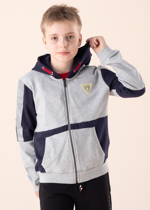 Eest lukuga suletav Guess pusa paistab silma oma mitmekülgsuse poolest. Pusa pealispinnale annavad isikupära erinevad värvitoonid -esindatud on hall ja tumesinine toon. Külgedel asetsevad avatud tegumoega taskud ning efektsust annavad rinnal olev logo ja käiste ülaosas looklevad laiemamoelised helkurribad, mis muudavad kandja märgatavaks ka hämaratel õhtutundidel. Käiste otstes ning pusa alaosas looklevad soonikud, mis annavad pusale suurepärase hoidvuse. Kangas on suurepäraselt pehme ning hea venivusega, tagades kandmisel suurepärase mugavuse, seda isegi aktiivsemates olukordades. Modelli pikkus on 146 cm ning kannab suurust 147.