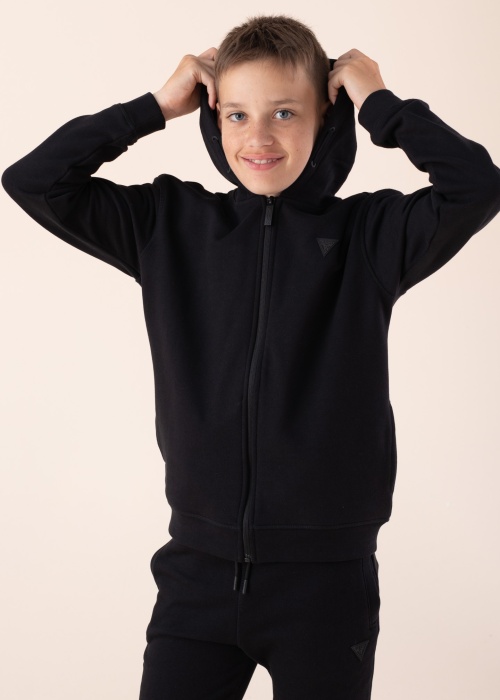 Klassikalise tegumoega, poisilik, eest lukuga suletav Guess pusa on ideaalne argiseks kandmiseks. Rinnal asetseb kummine logo ning efektsust annab hubane kapuuts. Kangas on mõnusalt pehme ja pakub õrna venivust. Külgedel asetseb kaks avatud taskut. Ideaalne kombineerimiseks nii dresside kui teksapükstega. Modelli pikkus on 154 ja kannab suurust 147.