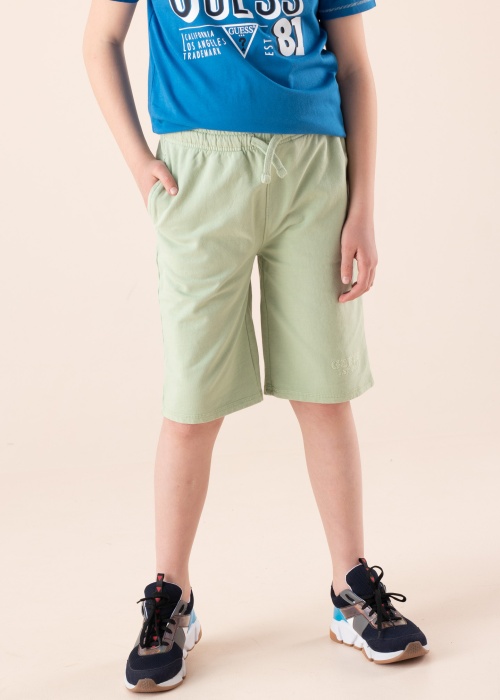 Kenad heledas toonis Guess lühikesed püksid sobivad valatult saabuvasse suvehooaega või kodus vabaaja veetmiseks! Elastne vöökoht kinnitub reguleeritavate paeltega, külgedel paiknevad kaks avatud küljetaskut, tagumisel osal üks avatud tagatasku. Lihtsat ja minimalistlikku lõiget täiendab vasakul säärel asetsev brändi logo, mis sulandub kenasti kokku kanga värviga. Pehme puuvillast kangas on keha vastas tõeliselt mugav. Rõiva valmistamisel on kasutatud orgaanilise puuvilla kiude. Modelli pikkus on 147 cm ja kannab suurust 147.