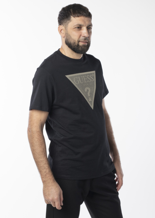 Guess meeste t-särk on stiilne ja mugav valik igapäevaseks kandmiseks. Sellel on ümar kaelus ja sirge tegumood, mis tagavad klassikalise välimuse. Brändi logo rinnal lisab särgile isikupära. Modelli pikkus on 188 cm ja kannab suurust L.