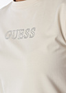 Guess naiste t-särk Briana on kena ja lihtne, millel on ümar kaelus. See on mugav ja meeldiva puudutusega, sobides erineva iseloomuga päevadesse. Esirinnal olevad sädelevad kivikesed ja brändi kirje lisavad särtsu. Modelli pikkus on 176 cm ja kannab suurust S.
