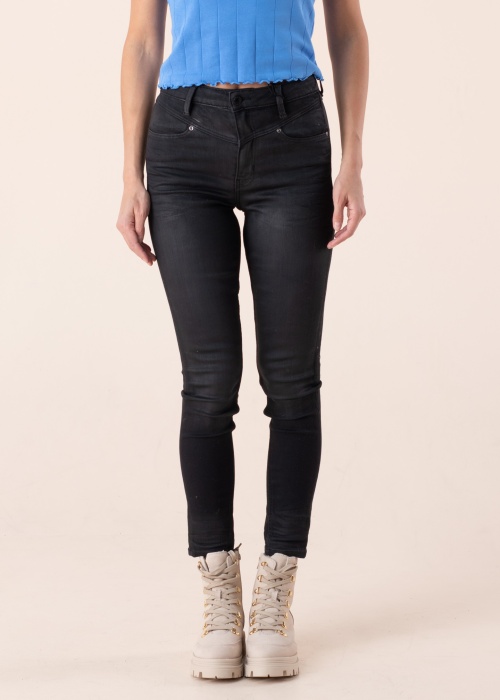 Kihvtid ja naiselikud Guess teksapüksid on ideaalsed argiseks kandmiseks. Eest kinnituvad need mugavalt jalga tõmbluku ja kinnitusnööbi abil. Need kõrgema värvliga püksid omavad külgedel avatud tegumoega taskuid, tagaküljel asetseb aga samuti kaks avatud taskut, milledest parempoolsemat ilmestab efektne brändi kirjega hõbedane logo. Püksi dliibuvad mugavalt ümber kandja keha ning tänu suurepärasele elastsusele saab kandja end tunda mugavalt ka aktiivsemates olukordades. Modelli pikkus on 177 cm ning kannab suurust 27-29.