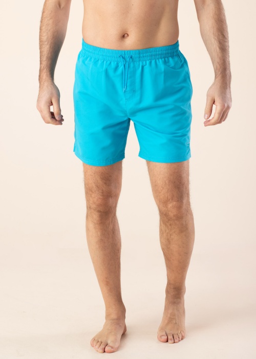 Ühevärvilised elastse kummivärvliga ujumisshortsid on õhukesed ning kerged. Küljel on avatud taskud, värvlil tunnelpael ja taga krõpsuga tasku. Sisemuses on õhukesest võrkkangast püksid. Modelli pikkus on 188 cm ning kannab suurust L.
