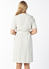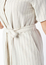 Hansmark naiste kleit Aljona on stiilne ja naiselik valik, mis sobib suurepäraselt igaks sündmuseks. Kleit on triibulise mustriga, lühikeste varrukatega ning valmistatud kergest ja hingavast materjalist. Keskkohas on seotav pael, esirinnal nööp ja küljel avatud tasku. Modelli pikkus on 178 cm ja kannab suurust 38.