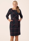 Hansmark naiste kleit Enni on efektne ja stiilipuhas valik igale naisele. Kleidi kaelusel olev krooge lisab sellele naiselikku võlu ja elegantsi. Keskkohas seotav vöö rõhutab figuuri ning loob kauni silueti. Taga asuv lõhik ja seljal olev lukk tagavad mugavuse ja praktilisuse. Modelli pikkus on 178 cm ja kannab suurust 38.