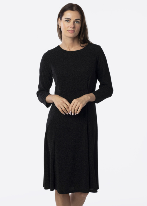 Hansmark naiste kleit Renate on pidulik ja klassikaline valik, mis sobib suurepäraselt erilisteks sündmusteks. Kleit on ümara kaelusega ning pikkade varrukatega, pakkudes elegantset ja ajatut stiili. Materjal on läbikumav ja elastne, lisades sädelust ja mugavust igale kandjale. Modelli pikkus on 176 cm ja kannab suurust 38.