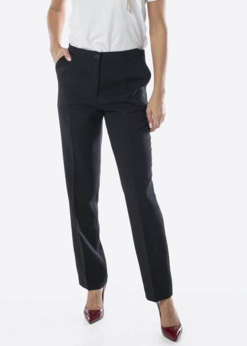 Hansmark naiste viigipüksid Beky on klassikalise disainiga, mis sobib ideaalselt igapäevaseks kandmiseks. Pükstel on keskmise kõrgusega värvel, sirge tegumood ning värvel kinnitub nööbi ja lukuga. Külgedel asuvad avatud taskud lisavad praktilisust. Modelli pikkus on 176 cm ja kannab suurust 38.