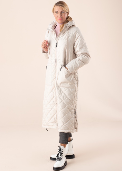 Ilse Jacobsen talvemantel haarab su enda sooja embusesse! See kaasaegne talvemantel on sirge tegumoega ning tepitud tegumoega. Hõlmad kinnituvad lukuga, praktilised taskud paiknevad külgedel ja varrukaotstes on soonik. Kapuuts on fikseeritud. Sära ja maailm naeratab Sulle vastu! Modelli pikkus on 178 cm ning kannab suurust 36.