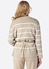 JDY naiste kardigan Sara on stiilne ja pehme rõivaese, millel on pikad varrukad ja triibuline muster. See kootud kardigan on varustatud seotava paelaga keskkohas, mis lisab elegantsi ja mugavust. Toode on valmistatud LENZING™ ECOVERO™ kiust, mis on saadud sertifitseeritud taastuvatest puiduallikatest, kasutades keskkonnasõbralikku tootmisprotsessi ja järgides kõrgeid keskkonnastandardeid. Modelli pikkus on 178 cm ja kannab suurust S.
