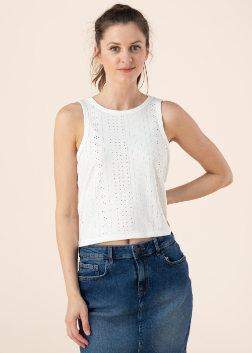 JDY topp Cathinka sobib vabaaja veetmiseks. Suvine ilma varrukateta topp on õhuline ja pitsiline ning kandmismugavust pakub materjali elastsus. Modelli pikkus on 177 cm ning kannab suurust S.