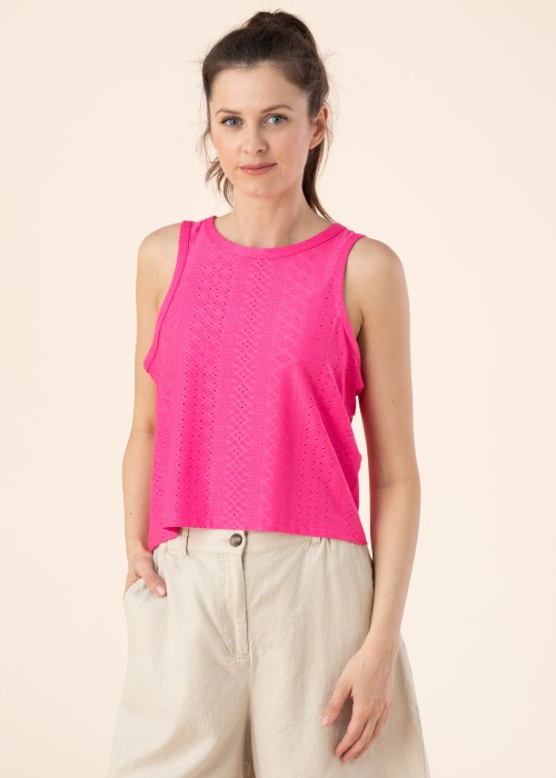 JDY topp Cathinka sobib vabaaja veetmiseks. Suvine ilma varrukateta topp on õhuline ja pitsiline ning kandmismugavust pakub materjali elastsus. Modelli pikkus on 177 cm ning kannab suurust S.
